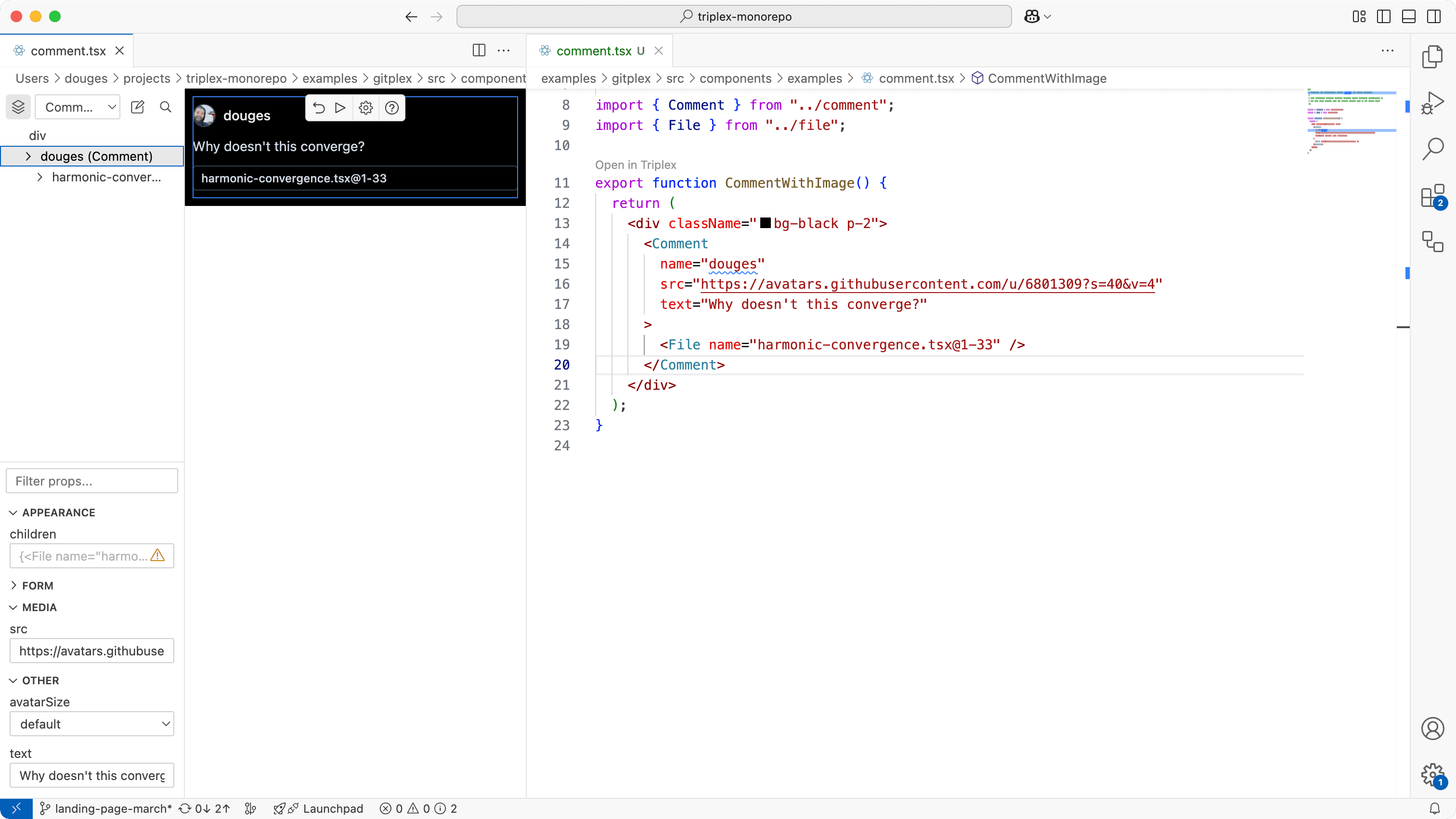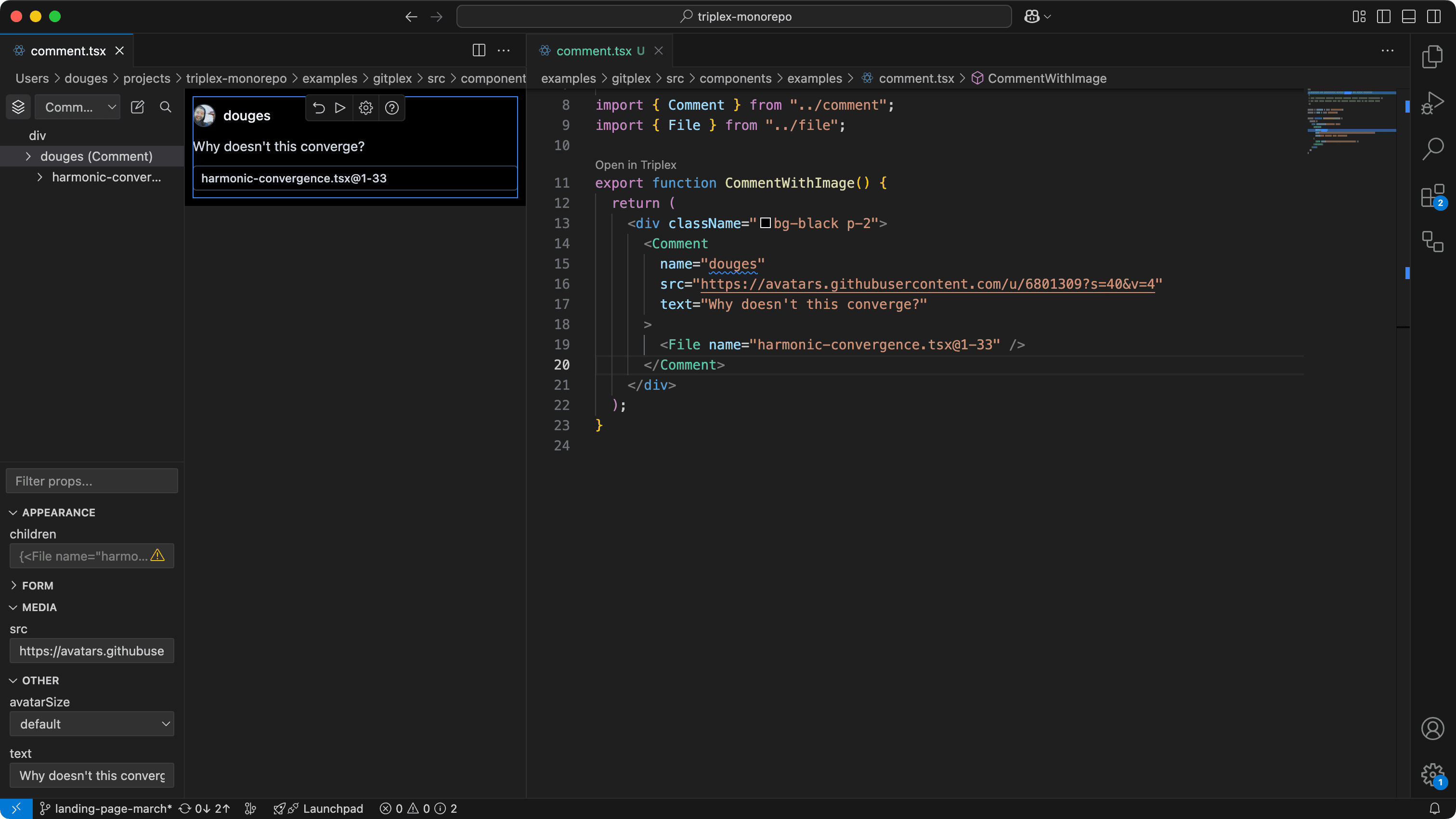 From landing pages, blogs, and even the next biggest social media site, build it with Triplex. Need another dimension? Bring in React Three Fiber and harmoniously build in 2D and 3D.