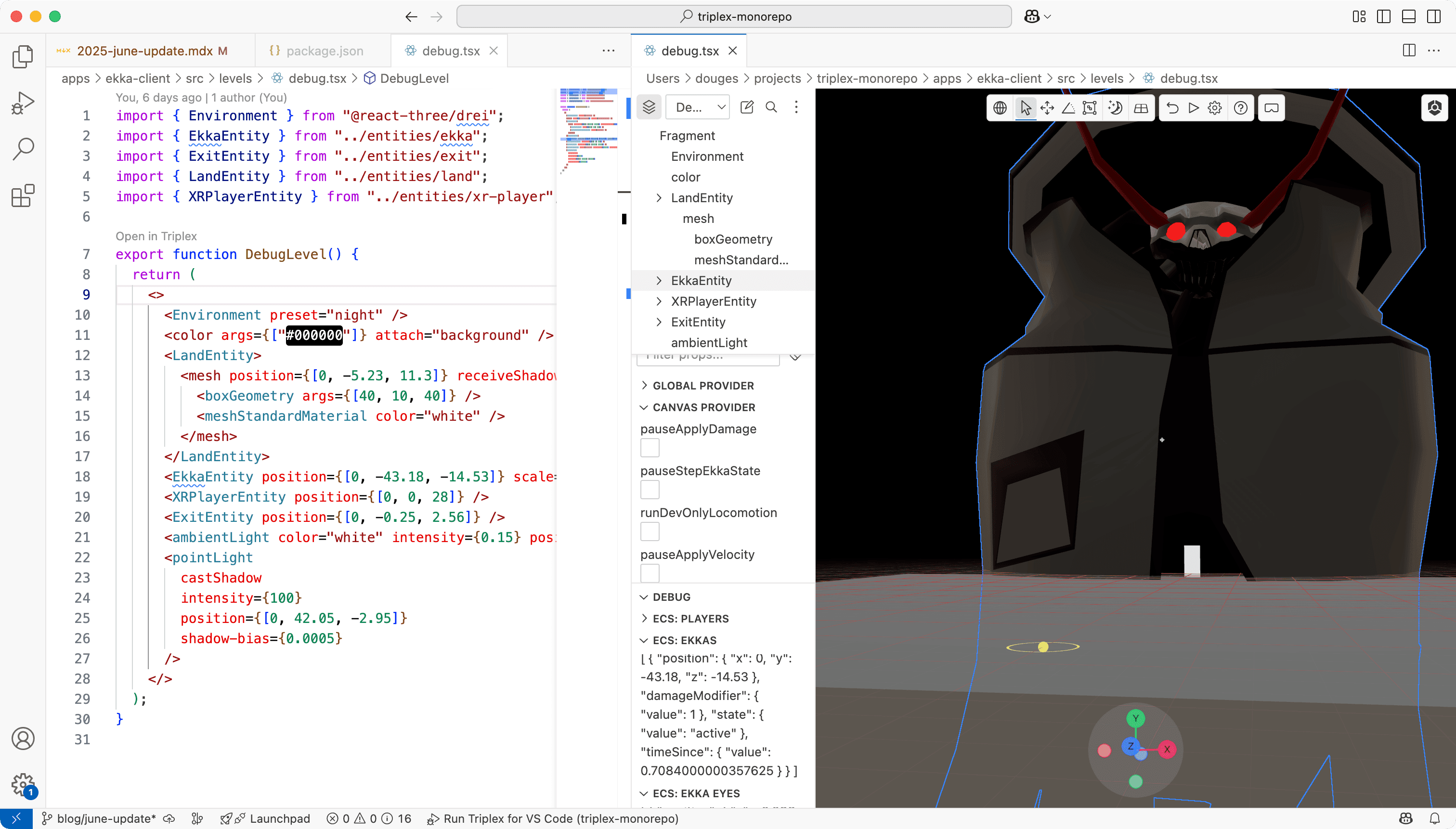 For those using Koota (a new state management library out of pmndrs) I've built helpers to make it more easily integrate into your components and Triplex. There are now two experimental APIs in the @triplex/api package: